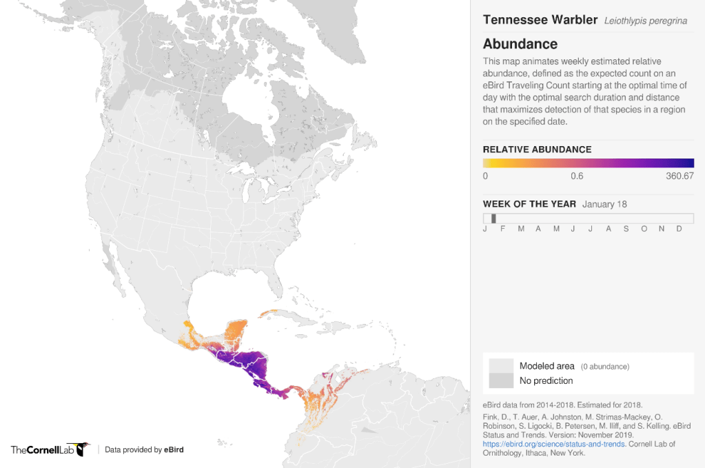Now, just for the record, here is the abundance map for the tenn warbler when I saw it in mid-January.